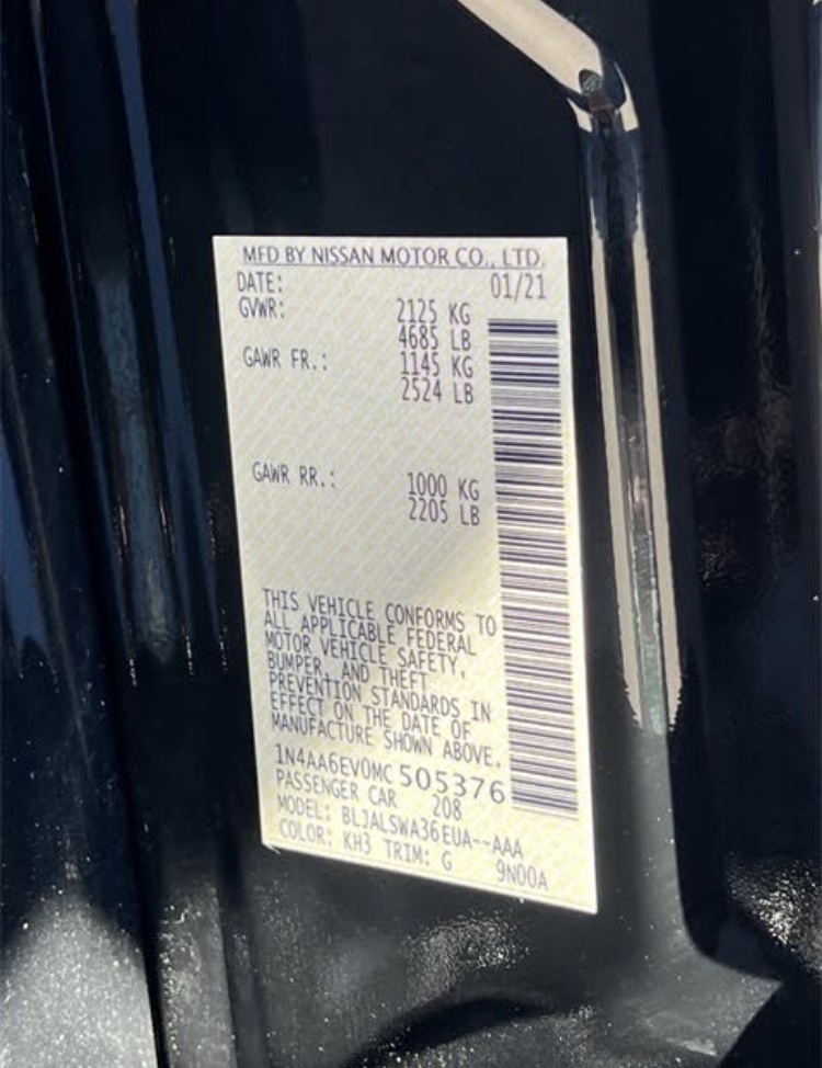 | VIN: | 1N4AA6EV0MC505376 |